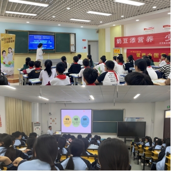 “你們平時都喜歡吃零食嗎?最喜歡的零食是什么呢?”講座開始前,營養(yǎng)科盧主任以“吃零食”打開話題,吸引學(xué)生們的興趣和注意。盧主任把零食配料表拿出來,告訴大家哪些是不健康的配料,以后選擇零食的時候盡量不要選擇含有這些配料的食物。講座中,盧主任從減油、增豆、加奶這幾方面向?qū)W生們傳播營養(yǎng)健康科普常識,增強(qiáng)小學(xué)生的營養(yǎng)健康意識,幫助他們建立科學(xué)的飲食習(xí)慣,促進(jìn)學(xué)生們的身心健康發(fā)展。